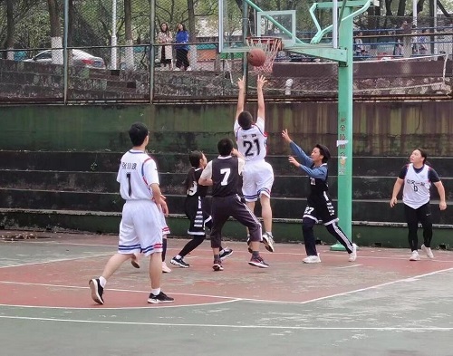 裁判哨声一响,第一节比赛开始,广告二班0号孟伟民同学反应敏捷,迅速抢得控球权,但中文一班也不甘落后,抓住广告二班的失误,0号颜皇抢断对方的控球,与1号张小波完美传球,随后中文一班1号张小波迅速投球,投下本场比赛“第一球”,为中文一班拿下二分。随后,广告二班迅速调整阵容,10号万思甜精准回传0号孟伟民,0号孟伟民迅速运球,突破重重包围,一投即中。经过激烈比拼,第一节比赛广告二班以5:2的优势暂时领先。