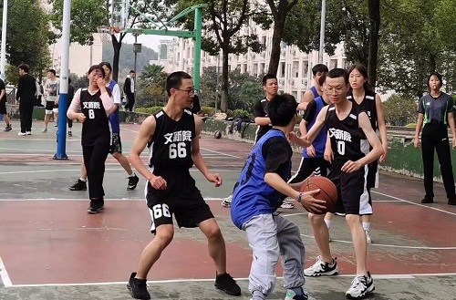 由于19级新闻联队比赛经验丰富,又有多名出色队友守阵,20级中文二班在比分上已有所逊色,19级新闻联队吴昊男不断进球得分,全场观众都为中文二班捏了一把汗。最后五分钟,双方你来我往,奋力抢球,最终19级新闻联队以93:81的成绩获得最终胜利。