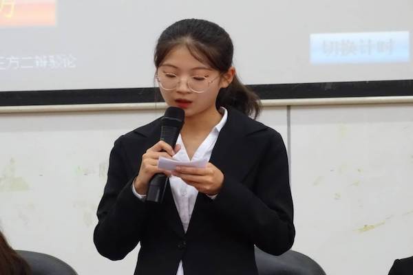 辩论队优秀辩手许思佳担任此次决赛主席,正反方就“新闻价值与新闻道德哪一个更重要”展开激烈讨论。正方新闻3班辩题为“新闻价值比新闻道德更重要”,反方广告1班辩题为“新闻道德比新闻价值更重要”。