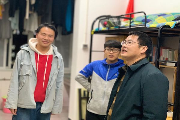 党委书记赵猛、副书记周鹏飞、团委书记管胜昔、学工办老师张瑜、龚鑫在北苑、琴湖以及金翰林宿舍区下寝走访,深切关怀同学们的学习生活。