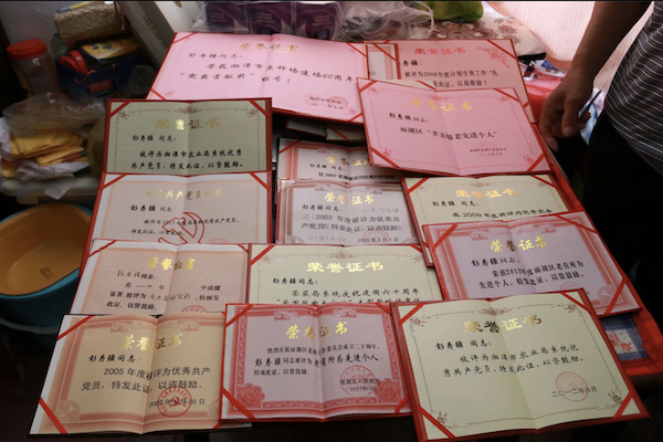 “尽管我已经退休了,但我仍想为政府、人民再多做点实事儿。”彭寿疆爷爷在2002年从湘潭市原种场退休后继续在场内担任老年党支部书记一职,致力于维护退休职工们的权益。2005年,由于财政拨款不足、生产效益低下,场内在职员工的基本工资被克扣,退休职工发放的养老金也只有月标准工资的60%。工资发放不到位,应有的福利得不到落实,引起了职工们的很大不满。彭寿疆爷爷尽管已经退居二线,但在为人民服务的时候,依然充满干劲,他及时应对,一面安抚群众,收集意见,一面向上级领导进行反映。经过长达三年的多方调度,最终在2008年5月,职工们的工资、养老金、养老保险和各项福利都得到了100%落实,一场冲突消弭于无形。