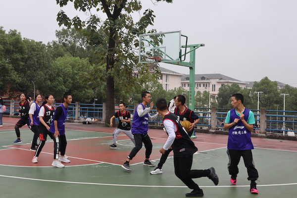 裁判一声哨响,比赛正式开始。双方队员都立即进入比赛状态,19新闻二班17号选手姜淑彦先声夺人,冲破层层防线,成功投进本场第一球,为新闻二班取得开门红。随后新闻二班47号吴昊男与17号姜淑彦默契配合,为新闻二班再进三球,球场上掌声雷动。19中文二班97号沈彦洲积极防守,奈何双拳难敌四手,17号姜淑彦势如破竹,再拿两球。第一场新闻二班以28比0暂时领先。