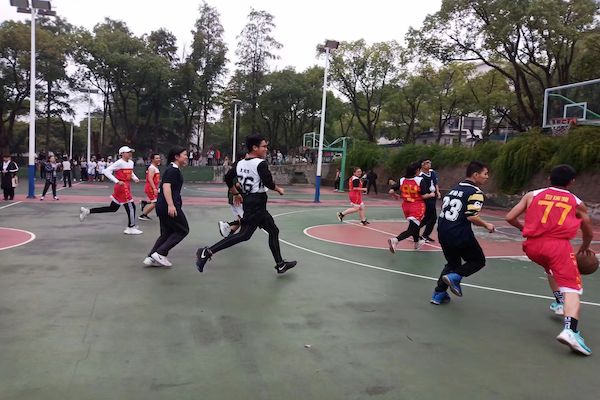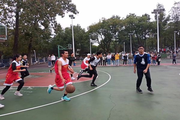 3+2迎新杯篮球赛在南苑球场继续举行。此次比赛由18级新闻广电队对战19级广告一班。