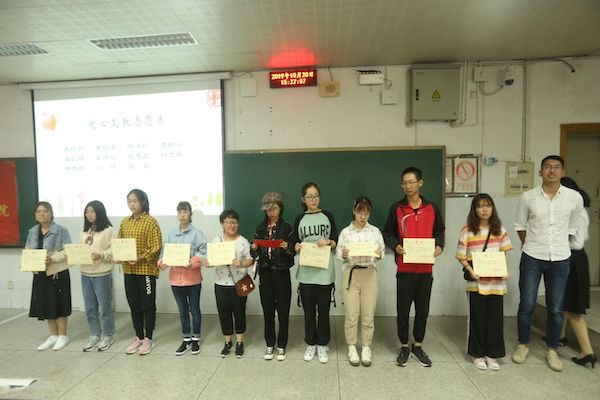 优秀志愿者的颁奖仪式及2019—2020学年“共建梦想社区”和“爱心支教”活动志愿者颁发聘书仪式在之后举行。其中王晓丹等45位同学获得“优秀志愿者”称号,王萌等26位同学获得聘书。