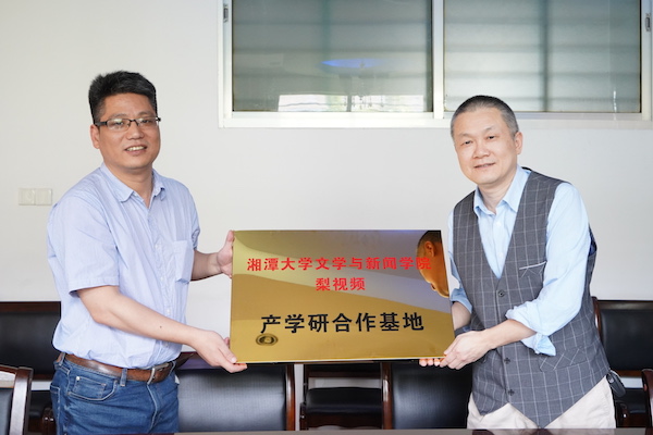 李院长在讲话结束后,与梨视频副总编辑兼华中大区总编辑汪庆红共同签署了产学研合作基地协议,并进行了基地授牌。