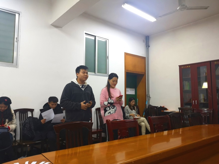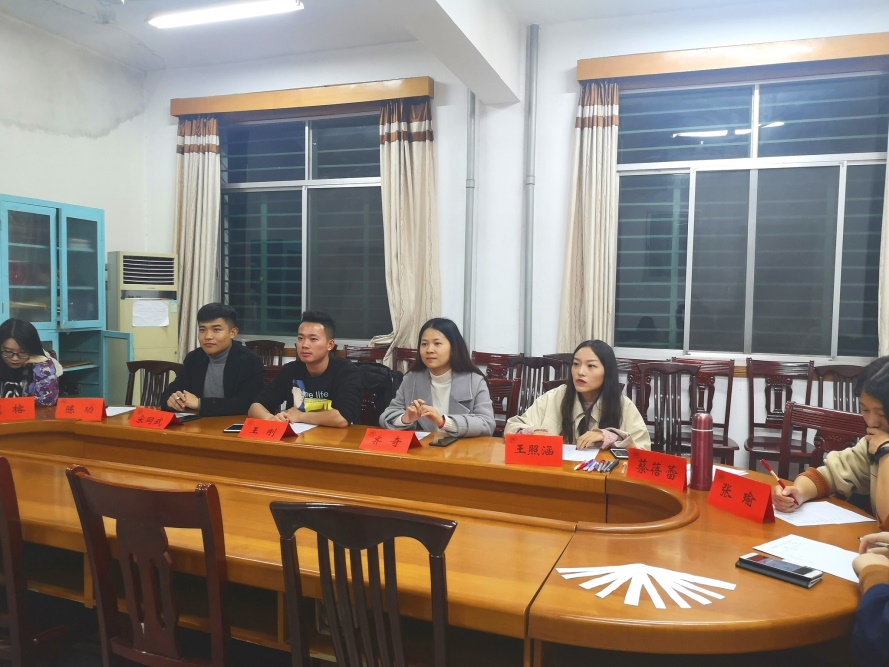 文体部部长王照涵主持,与会人员有文新院研究生会、研究生会团委成员以及碧泉书院研究生会、马克思主义学院研究生会、数学与计算机学院研究生会代表。整个选拔赛分为一轮选拔、二轮选拔、抽题回答、评委提问四个环节。