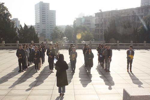 朗诵结束,全体人员绕纪念碑一周,缅怀革命先烈。随后在工作人员的引导下进入英烈苑,有序向无名烈士敬献鲜花并行鞠躬礼。献花和鞠躬过程中,大家排着整齐的队伍,一个接着一个上前,神情肃穆而庄重,充分体现了作为预备党员和发展对象的组织性和纪律性。