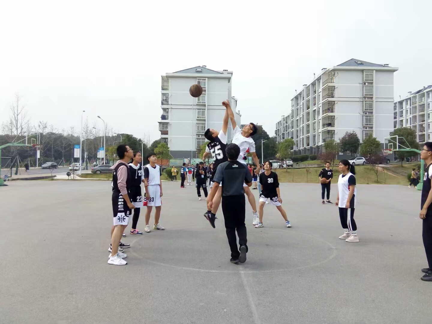 “3+2”篮球赛淘汰赛在湘大东门拉开序幕。17新传与18广告一班,经过一路过关斩将,终于挺进四分之一决赛,在球场上一较高下。作为双方之间的球技较量赛,也是大一与大二之间的友谊交流赛,在将近一个小时的角逐后,本次竞赛17新传VS 18广告一班最终以50:28的比分落幕,17新传获得本次竞赛的胜利,闯入半决赛。