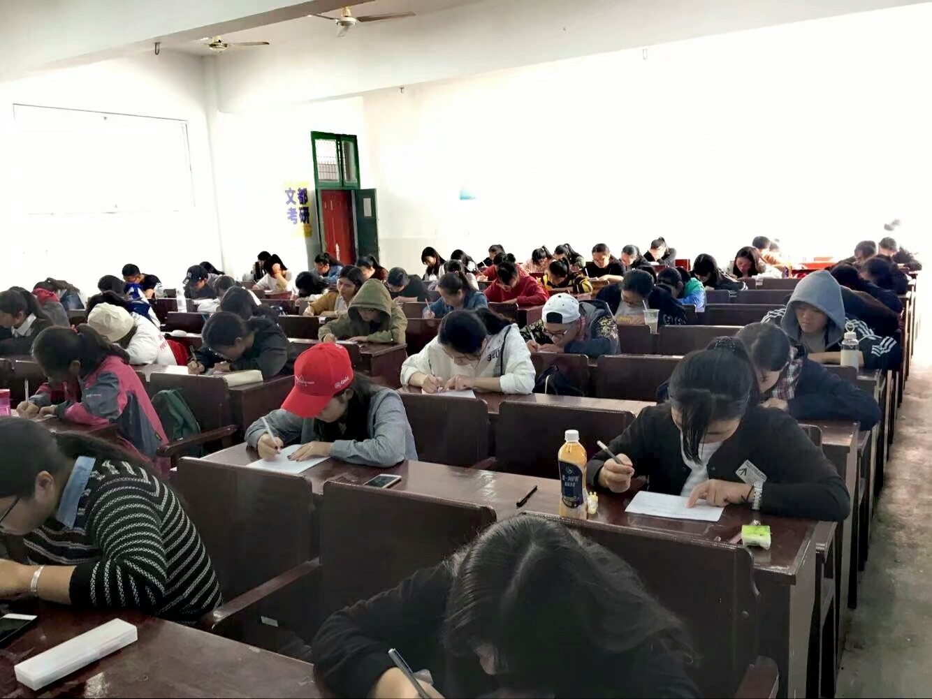 在考试期间,同学们都能够自觉遵守考场纪律,认真作答,无交头接耳现象。监考员来回巡走,使考试更加顺利有序的进行。考场中笔在桌面书写的声音格外清晰,团员们个个认真埋头答题,把三次团课的成果汇聚在一张纸上。