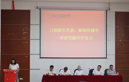 接下来,由2017级新生代表、新闻传播学1班唐雪融同学发言。首先,唐雪融同学表达了作为新生来到湘大的喜悦之情,诉说了自己对湘大以及糖心AV