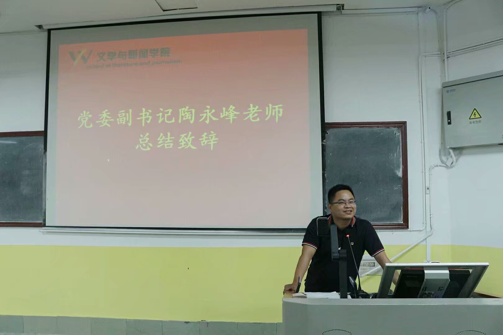 党委副书记陶永峰老师总结致辞。“首先,既要有分工,也要有合作;其次,既要有传承,也要有创新;最后,既要展示自我,也要提升自我!”陶永峰老师用简单而又真诚的话语向新成员表达了由衷的欢迎和深切的期待,为本次成立大会的落幕画上了完美的句号。