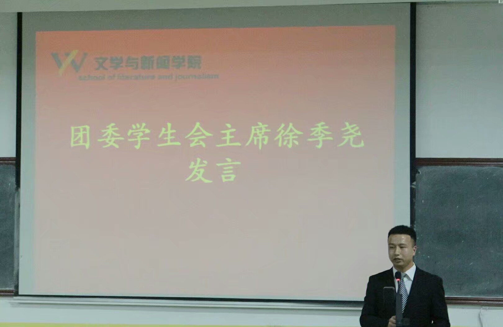 团委学生会主席徐季尧上台发言。首先,徐季尧主席对新成员的加入表示祝贺,而后他就自己的经历提出了一些期望与建议:学生会是一个优秀的大家庭,每位部长及干事只有早日进入角色并且团结友爱,才能把工作做得更好。同时,徐季尧主席也叮嘱大家,在完成好自己工作的同时,也不能忽视自己的学业,只有平衡好工作与学习的关系,才能真正使生活变得有意义。“你们的加入让学生会生机勃勃,希望一年后学生会因为你们能更加精彩!”徐季尧主席一番生动激昂的话语,赢得台下掌声雷动。