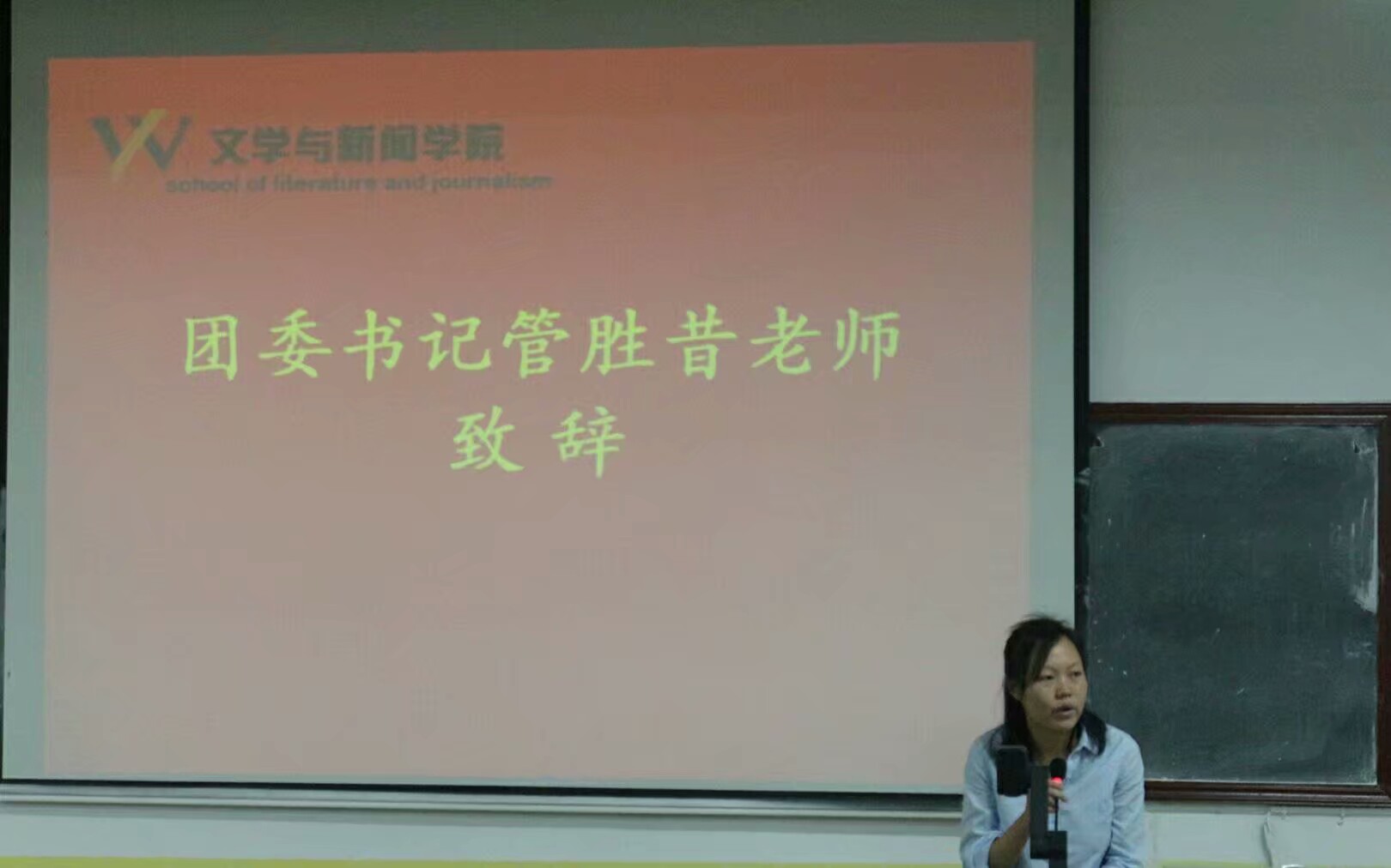 大会开始,首先由管胜昔老师致辞。管胜昔老师从“板栗炖鸡”这道家常菜入手,用幽默风趣的语言对第十七届团委学生会的成员提出了几点建议。首先,管胜昔老师希望新成员能尝试创新,并能做到从形式到精神的全面创新;其次,管胜昔老师认为,大学生要掌握好平衡,不论是学习与工作之间的平衡,还是内心与外物的平衡,都应得到重视;最后,管胜昔老师叮嘱新成员要能自我成长,要拥有终身学习的能力和欲望,更要保持满足于不满足之间的平衡。“做大事如烹小鲜”管老师精彩的发言,让大家对大学生活以及学生会的工作有了更深刻的认识,台下不时发出阵阵掌声。