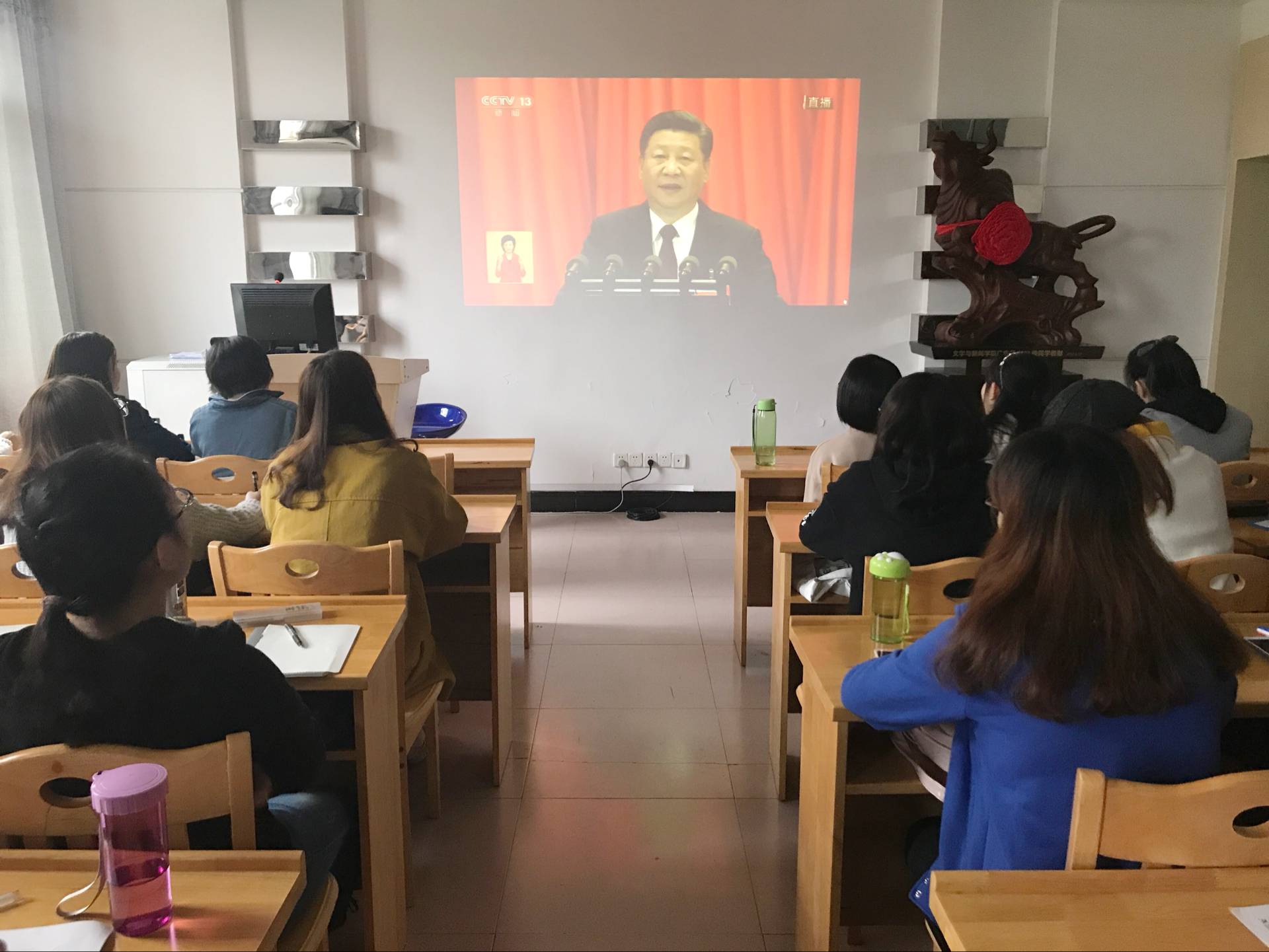 党的十九大胜利召开,是全党全国各族人民政治生活中的一件盛事、大事、喜事。为及时学习领会党的十九大精神,2017年10月18日上午9时,文学与与新闻学院组织学生集中收看中国共产党第十九次全国代表大会开幕式盛况。中共糖心AV