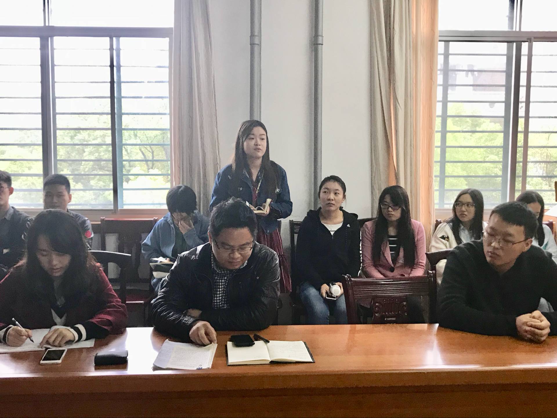 会上,参会同学积极讨论,分享了自己对十九大的认识和观看直播的感受。潘洁、徐珊珊、连石金等四位同学向大家分享了自己的观后感,其他参会同学也写下了自己的感悟和理解。