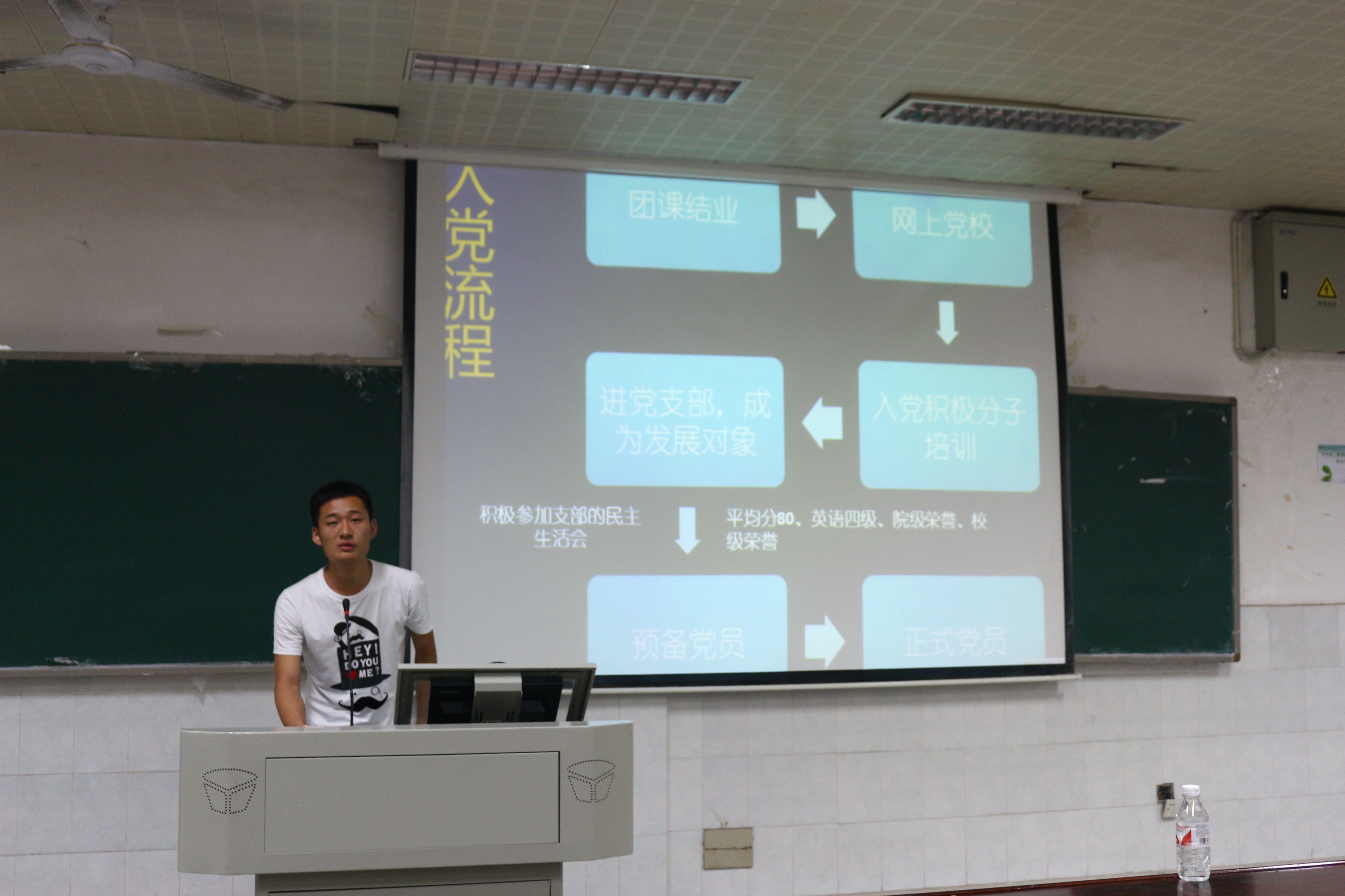 团委学生会主席连石金和组织部副部长王坤出席活动。团委学生会主席连石金以“献礼中国伟业,纪念建军九十周年”为主题进行授课,组织部副部长王坤做团课知识讲解。