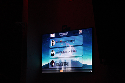 本次晚会以“韶光知梦”为主题,舞台整体布置巧妙精致,以蓝、绿、红为主色调的彩花成一条长链悬挂于舞台之上,台前装饰以俏皮的雪花和紫白两色气球,整个舞台充满青春的活力。舞台之上,更有绚烂的灯光、梦幻的气泡与迷蒙的烟雾相互交错,将舞台勾勒成一幅浪漫而富有活力的画卷。本场晚会共有15个节目,囊括了歌舞、朗诵、情景剧等精彩纷呈的内容,给现场观众带来了一次视觉与心灵的震撼。伴着《fantastic baby》的律动,观众陆续入场,舞台两侧的微信墙上观众也开始纷纷“表白”。之后,在主持人与现场观众共同的倒计时中,晚会正式开始。