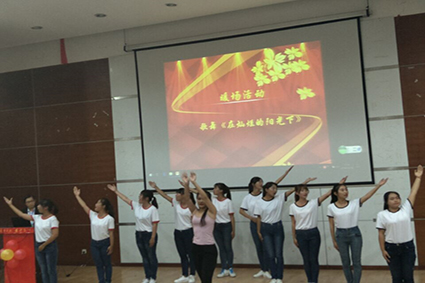 上半场比赛结束后是暖场活动环节,由文娱部带来的歌舞表演《在灿烂的阳光下》精彩绝伦,接下来的抢答环节更是极大的吸引了同学们的兴趣,有关党史的问题同样也增长了同学们的知识。暖场活动十分有趣。