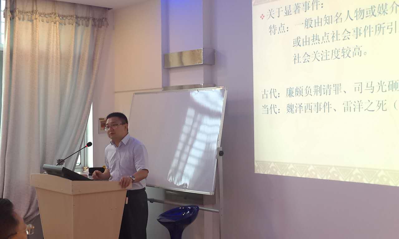 谢晓明教授首先指出显著事件就是一般由知名人物或媒体引发,或由热点社会事件所引发、社会关注度较高的事件。这些显著事件对于语言发展都会带来影响。此后,他通过“期期”作了具体的分析。“期期”有三种主要使用情况,一为口吃;二为量词;三为表实在、务必的语气。而在大量的词典,“期期”并未收入当中。由此可见在现代汉语里“期期”成不成词目前还没有引起关注也没有定论。随后,通过对《史记》、《史记正义》等等书籍中的“期期”使用分析,探讨“期期”的来源,“期期”的含义及其发展变化。谢教授认为,首先“期期”确实符合口吃的一般特征,而在《史记》中,司马迁使用的“期期”是有意为之,一举两得。既有口吃的意思,同时也重复了语气副词“期”。谢教授对于“期期”的词汇化过程作了分析阐述,最后得出结论,在当代汉语“期期”的使用频率上升,且用法有所扩展,认为已基本词汇化。而作为拟声词“期期”的词汇化机制主要汉语词语双音化的影响。副词“期期”的词汇化机制则相对复杂,它是语气副词“期”从构形重叠到构词重叠的演化结果。词汇化的外部原因是偶发性的语言相向,通过权威媒介和典型人物而得以广泛传播和引用。通过对“期期”的研究分析,引发了谢晓明教授对于其他相关问题的讨论,并认为现代汉语在自主地走向拼音化、形态化。