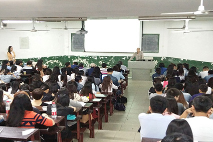 随后,杨洋老师为毕业生们讲解关于毕业及就业的一些注意事项。杨老师针对就业协议书、毕业生们的档案去向、毕业证的发放、报到证、户口等相关问题进行了详细说明。杨老师再三强调不要遗失报到证,改派流程最好一次确定。毕业生们都认真聆听、详细记录了这些注意事项。接着,杨老师对部分毕业生的提问进行了答疑。
