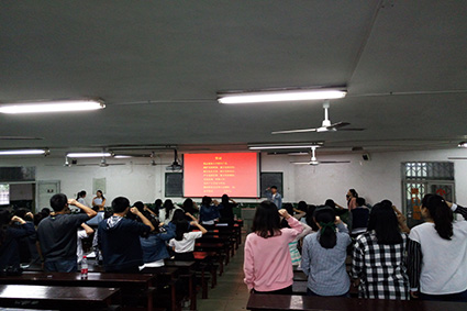 优秀大学生党员班的徐佳超同学为大家领誓。重温入党誓词让大家又一次感受到了当初入党时的激情,同学们的情绪都很高昂,在宣誓的过程中每个人的声音都很洪亮。