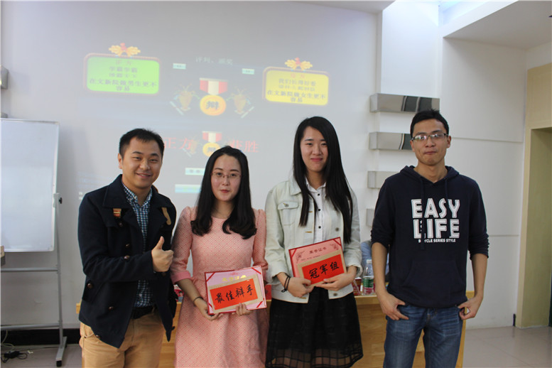 “学霸学霸雄霸天下队”显然准备充足,同样根据身边实例论证文新院男生们的“心酸史”。他们逻辑清晰的辩词,时时博得同学们的阵阵掌声。在三人轮番的陈述过后,由一直以来见证全程比赛的三位议长投票选出。最后,胡银萍以两张票数摘得“奇葩新说”最佳辩手。