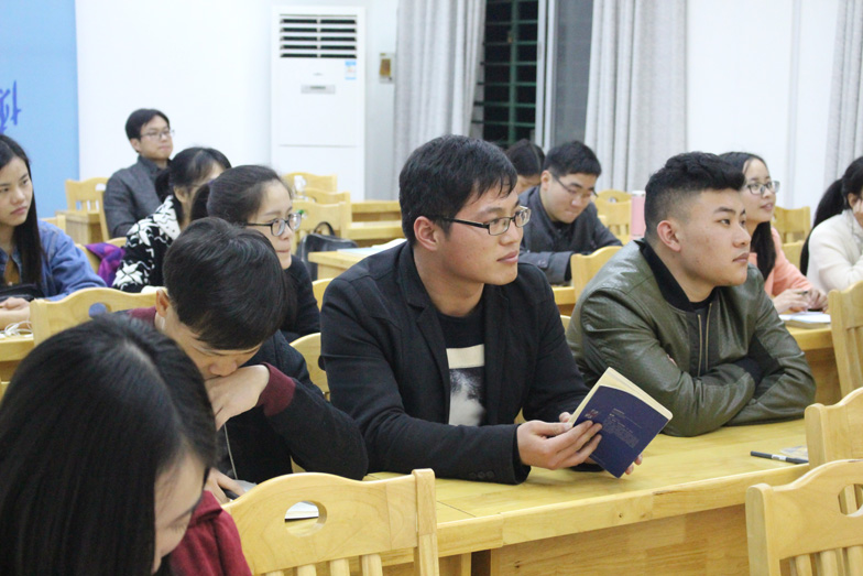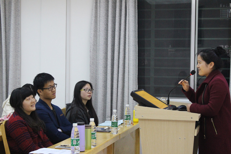 第一位进行学术分享的是来自2015级文艺学的范红利,其通过《红楼梦》中黛玉葬花、黛玉教诗、黛玉之死等书中片段,来讲述林黛玉的诗意生活。她赞美黛玉是一个极其有魅力的女子,我们也应该像黛玉一样做一个“灵魂有香气的女子”。