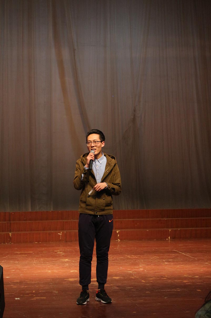 接着上场的是来自商学院的肖哲,天生雄浑的嗓音为他的表演加了不少分,而他稳重的台风也是他表演的一大亮点所在,赢得了评委和其他选手的肯定。