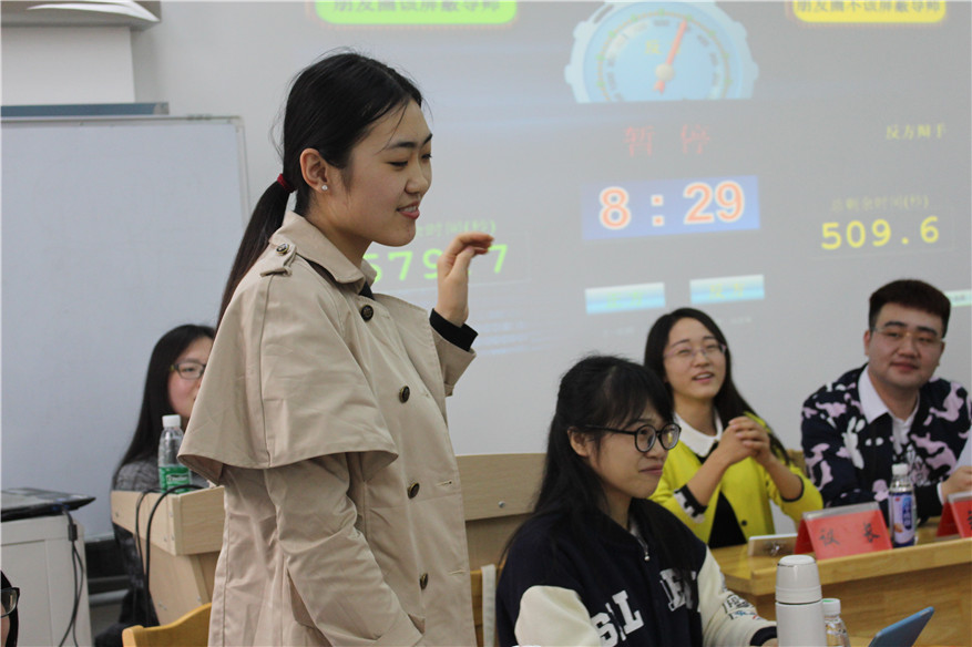 首先,正方一辩进行了立论,陈述正方的的观点。他们认为应该把朋友圈留给朋友,把课堂留给老师。屏蔽导师还给朋友圈一片净土,我们才能够在朋友圈里面肆意的做自己。随后反方同样进行了立论,在朋友圈展示自己同时也能够加深我们与导师的距离。学生不应该把老师看成是位于神坛的人。