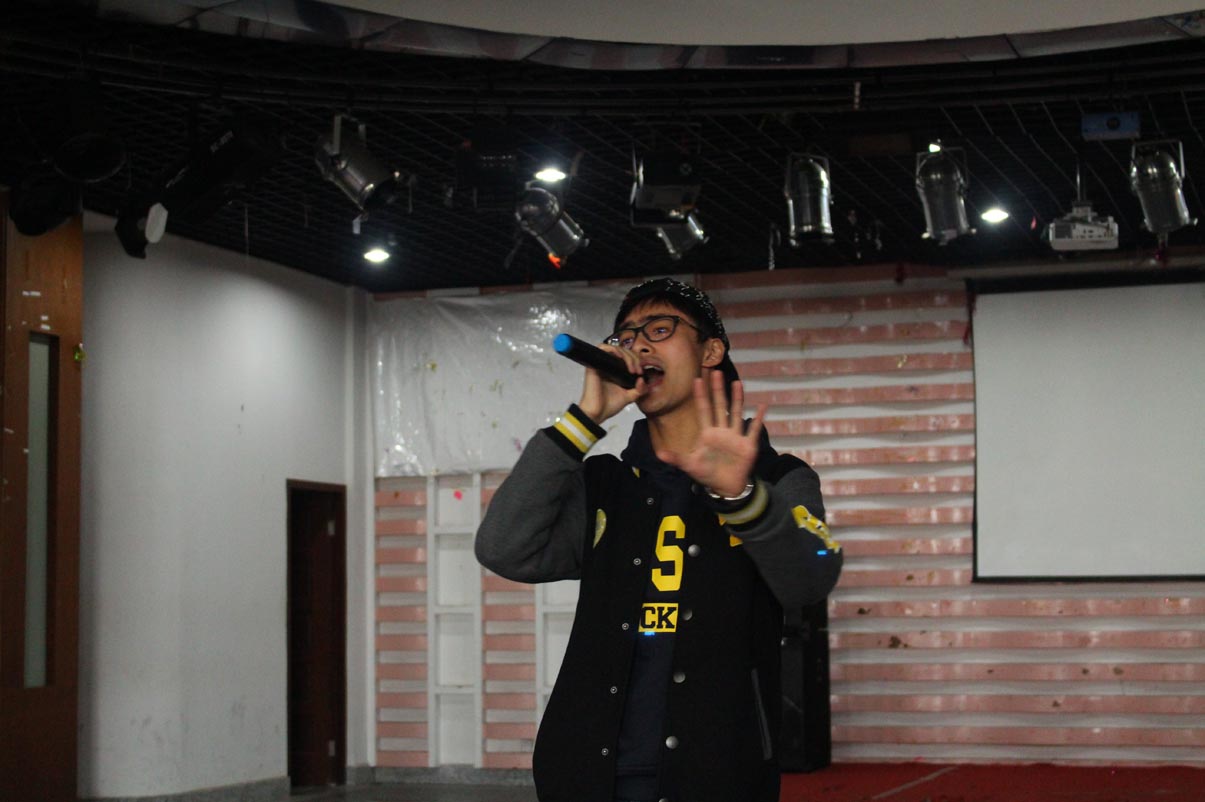 中文二班新生在他们带来的的情景剧中,用风格不同的人物形象营造了愉快充实的氛围,节目贴近大一新生的生活,平实真实,也乐趣不断,场下观众掌声连连。乐趣与励志并存,正式青葱岁月里积极阳光的大学生们应有的样子。