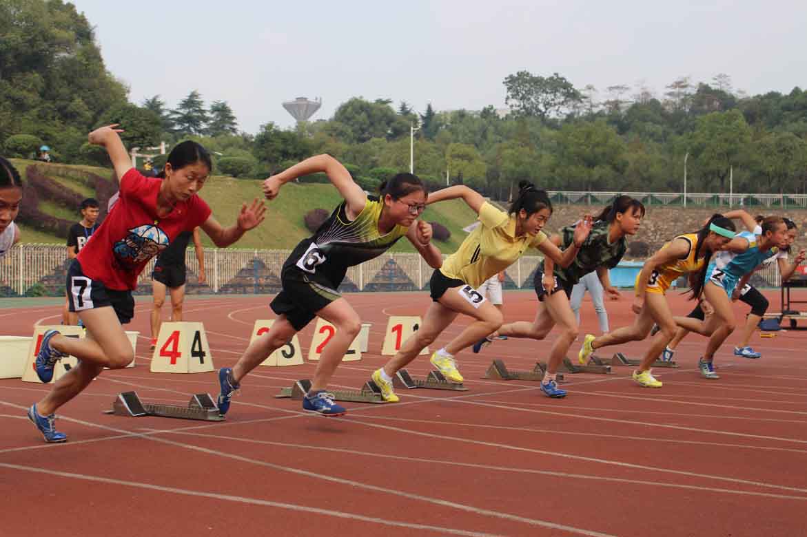 参赛的是风一般的女子陈紫偲。选手们在跑道上进行热身准备,一声哨响之后,一齐向终点冲去。最终,陈紫偲以21.697s取得了第六名的好成绩,为文新院赢得了荣誉。