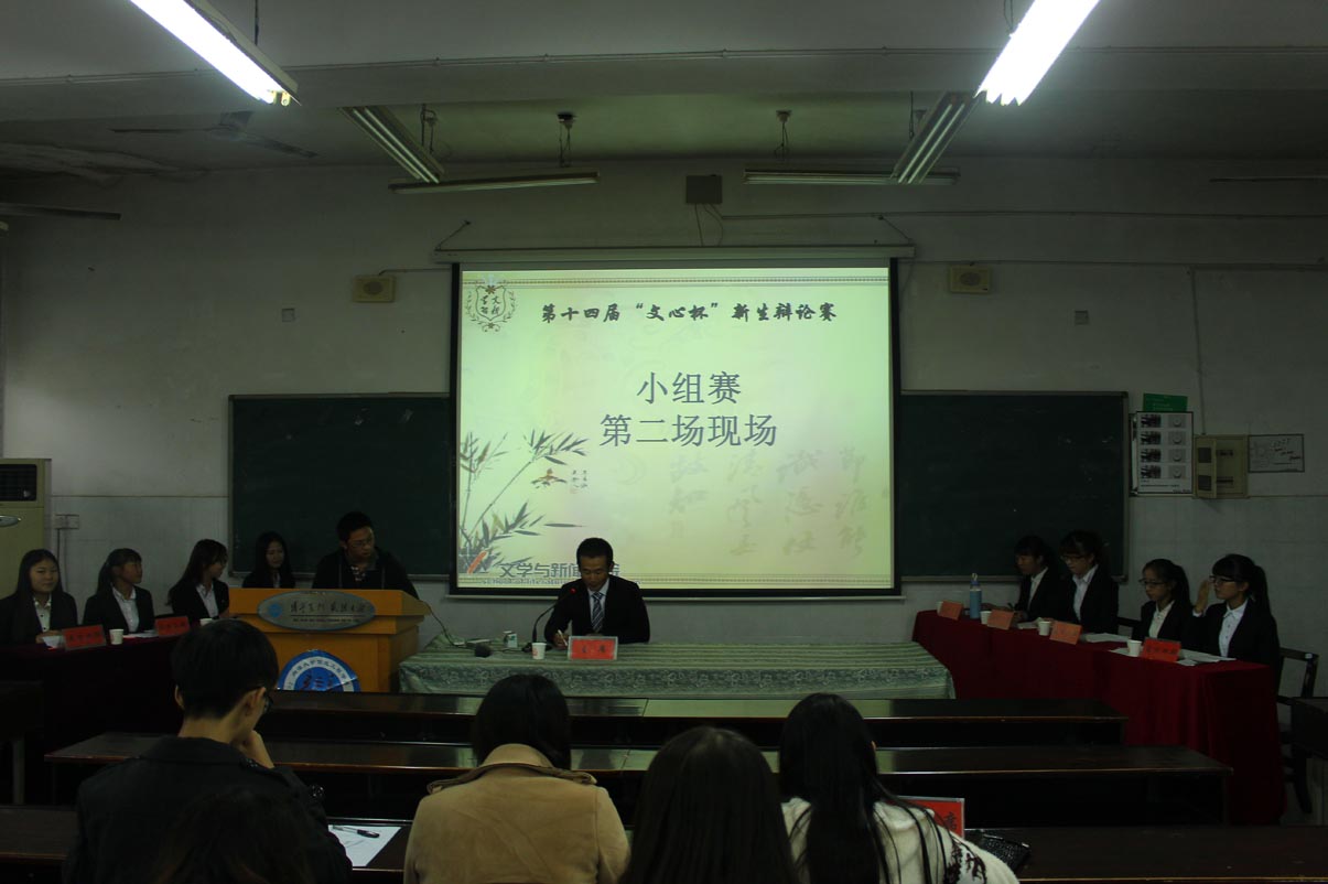 11月7日下午两点半,第十四届“文新杯新生辩论赛”小组赛在经管楼201举行。此次的小组赛由新闻一班对战,犹为精彩。本次辩论赛的主席由韩宸旭担任,评委分别由信工院的任文杰学长、公管院的孙英姿学姐和文新院的丰圆圆学姐担任。