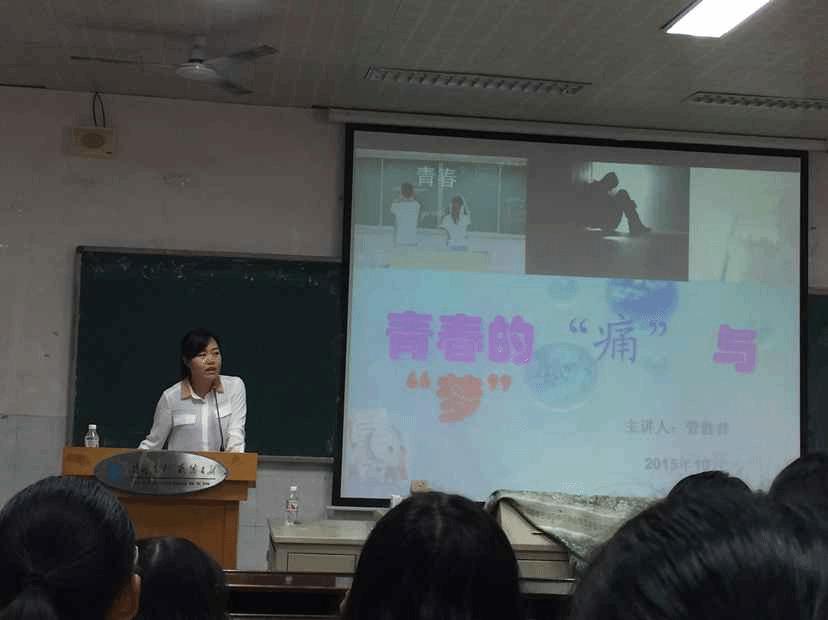 此次授课的主题是青春的痛与梦。什么是青春?因为有痛,所以叫青春;因为有梦,所以叫青春。首先,管老师为我们播放了一个视频,这是一个关于青春之痛的班会视频。老师让同学上台讲述自己的青春之痛,然后将它们写在黑板上。有的同学写道自己有缺陷,希望同学可以接纳自己;有的同学写道自己很迷惘,希望得到帮助.......黑板上的青春之痛有大有小,都是现实生活的写照。之后,同学们就黑板上的问题想出解决办法,并擦掉这个痛。最后,大家发现所有的青春之痛都不是无法解决的。在座同学的感触也很深:我们活在当下,只要做好自己,过好每一天就是最棒的;无论困难有多大,只要敢面对就没有解决不了的问题;只有面对痛,才能更加成熟,只要战胜痛,就会成功。