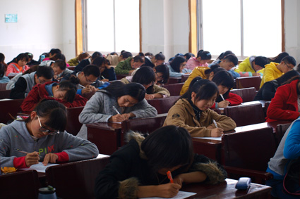 中午12:30考试准时开始。考试期间考生们均能自觉遵守考场纪律,认真作答,无交头接耳等作弊现象。整场考试期间考场内十分安静,无大声喧哗等现象。