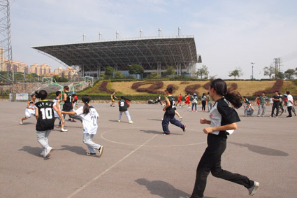 3+2篮球赛正在如火如荼的进行中,9月16日中午,在14级中文班的比赛中,14中文2班以56:16的比分完胜14中文3班。