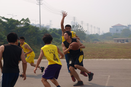 10月18日中午12:30,“文新院3+2”篮球赛在琴湖球场上演了一场同门师兄弟之间的对决,13广电2路逢14广电1,老将不让新手,13广电2最终以30:25拿下本场比赛。