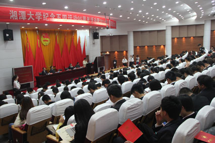 纪念五四运动95周年活动暨2014年五四表彰大会在逸夫楼第一报告厅举行。校党委书记章兢、校长黄云清、副校长周益春、副校长高协平、副校级督导刘建平和校长助理谭援强出席了本次会议。此外,党政办、组织部、宣传部、学生工作部(处)、机关党委、教务处、研究生院、招生与就业指导处、校工会、校团委、继续教育学院、子弟学校等单位主要负责人以及各院系分管学生工作的负责人、团委书记、获奖教师、学生代表等也参加了活动。黄云清校长担任本次会议的主持。