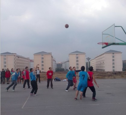 研究生师生篮球赛终于在今天开打。2013年12月18日上午十点,在新体育馆旁的露天篮球场,一切都在阳光下顺利进行。