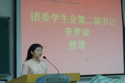 本次授课正式开始之后,首先由组织部副部长闫玉雪向大家讲解了入党的主要程序。随后又向大家详细介绍了包括团旗、团徽、团歌、团员证、共青团组织原则、共青团的性质、入团誓言、共青团主要社会责任、共青团主要任务以及团员义务等方面的团课主要知识。
