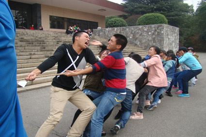 团委学生会心理部承办,2013新生素质拓展于10月27日落下帷幕。本届新生素质拓展包括拔河比赛和“风雨人生路”两个活动,旨在通过集体活动让新生收获学习外的东西,体验互动的乐趣并提升自身综合素质。