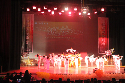 大家期待已久的神秘节目在最后终于揭晓。13级新生辅导员、第十三届团委学生会及主席团纷纷耍宝卖萌,各展风采,博得全场又惊又喜的掌声。受到大家热情的感染,雷磊副院长也上台为大家带来两首深情款款的粤语歌,现场掌声雷动尖叫不断,将晚会推向最高潮。最后,在《we are young》歌曲串烧中,本晚会圆满结束。