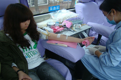 团委学生会青年志愿者实践部在北苑铁门口组织展开了“爱心血库”义务献血活动,这是2013级新生入学以来的第一次义务献血活动。