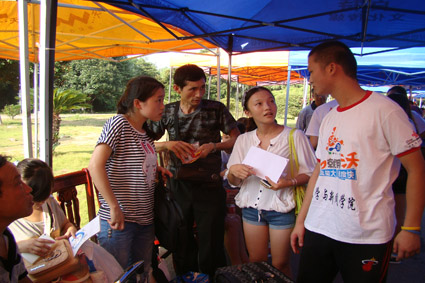 团委书记管胜昔老师到达迎新点了解工作情况,并及时提出改进意见。