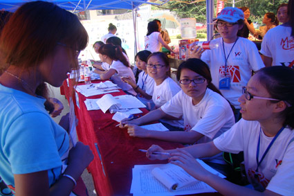 官方的迎新时间,但整个上午前来报道咨询的新生和家长不断,迎新点气氛十分热烈。炎炎烈日,并没有阻挡文新人的迎新热情,他们穿梭于俱乐部、北苑和北青公寓,一次次帮新生扛运行李,即使汗流浃背,体力透支,他们仍然坚持着。