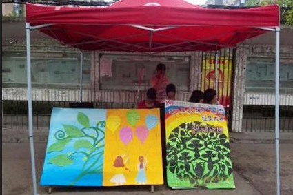团委学生会广告部承办的第二届公益广告语大赛在北苑主干道摆点,并进行抽奖型投票,进行最后的决赛。
