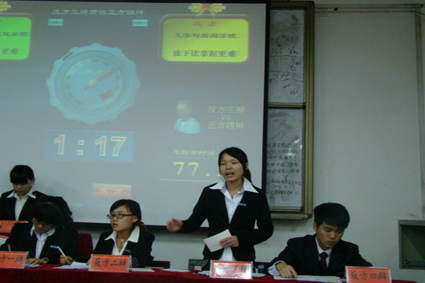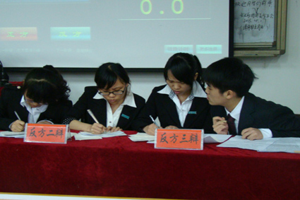 参加比赛的辩手有一辩侯婉莹、二辩向娴、三辨罗典、四辩贾晓旻。
