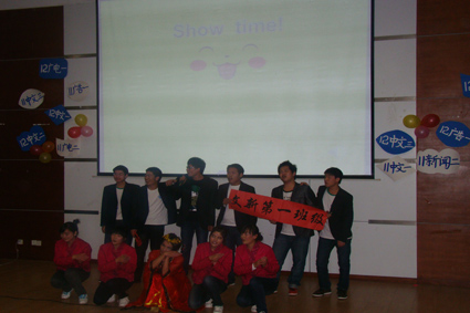 11广告1班秉承“青春没有失败,只要亮出风采”的主旨,从学风建设、组织建设、寝室建设、班级活动、获奖情况等方面展示了自己的班级文化。 11广电2班在PPT中首先介绍自己班级的口号、班徽、班服、班赋以及自己填词创作的班歌,随后,从班级文化建设、专业知识建设、特色文化建设、基础制度建设、课外活动等方面全方位地展示了自己班级的特色。最后,在Show Time中,他们的集体舞《江南Style》和《贵妃醉酒》将现场气氛推向高潮,赢得全场好评。“青春无畏,逐梦扬威”,伴随着响亮的口号,11广电1班开始展示自己的班级,由学生填词创作的班歌《恒久传唱》唱出了他们心声,设计新颖的班服表现了广电专业的特色,班级主题“执笔笑风尘”彰显了他们的青春豪情,在班级建设之外,他们还展示了班级获得的各种荣誉,包括百佳团支部、班服设计大赛冠军、红歌会第一名等,表现了班级的强大实力。