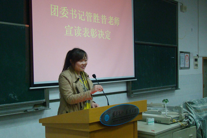 随后,团委书记管胜昔老师宣读本学期表彰决定,并依次对优秀干事、优秀部长和优秀部门进行表彰。