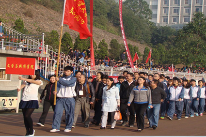 在各项运动赛事中获得多次荣誉这一事实。最后,黄云清副校长还提出要建立安全、文明、规范的赛制,并表明对运动员、裁判员和赛事工作人员的期望。之后,运动员代表翁凯明、裁判员代表甘丹丹相继宣誓。校长罗和安宣布本次运动会正式开幕。