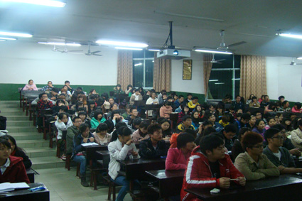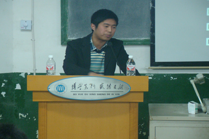 首先,雷亚男学长以“什么是团委学生会”为切入点,简要地阐述了团委学生会的定义,以及文新院团委学生会的自身特点和内部分工,并别出心裁以提问的方式向大家介绍了文新院团委学生会的理念口号、行事风格和宗旨,让全体学生会成员对文新院团委学生会有了更深一层的了解。随后,他就“如何做一名团委学生会的人”详细讲解了文新院团委学生会成员应具备的几点意识,即大院意识、亲近意识、策划意识、总结意识。他谈到,在团委学生会工作,大家会收获很多,如友情、办事能力、自信心、人际关系、广阔的视野等。